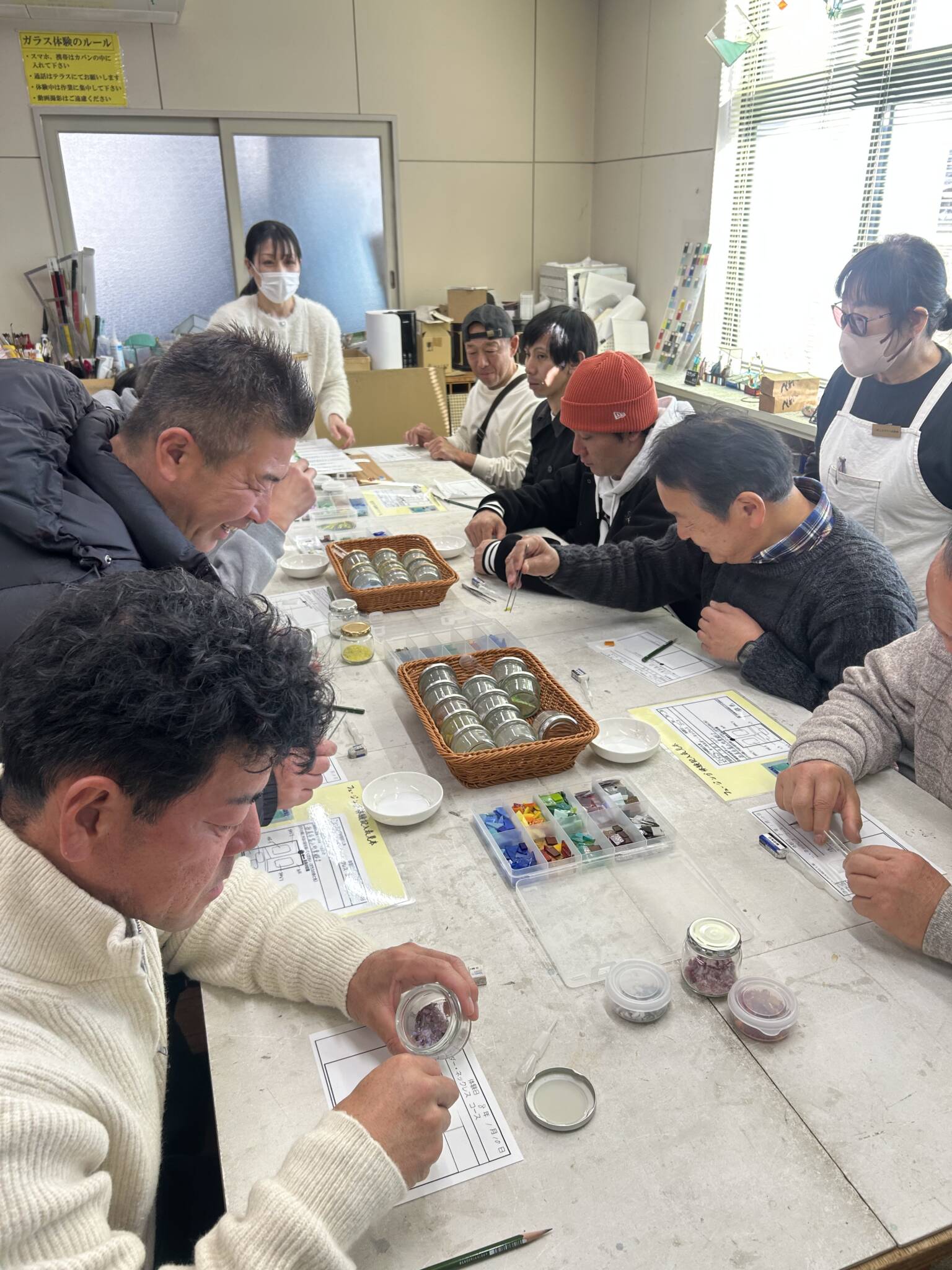 こちらの施設では、ガラス体験をし思い思いのストラップを作成しました。