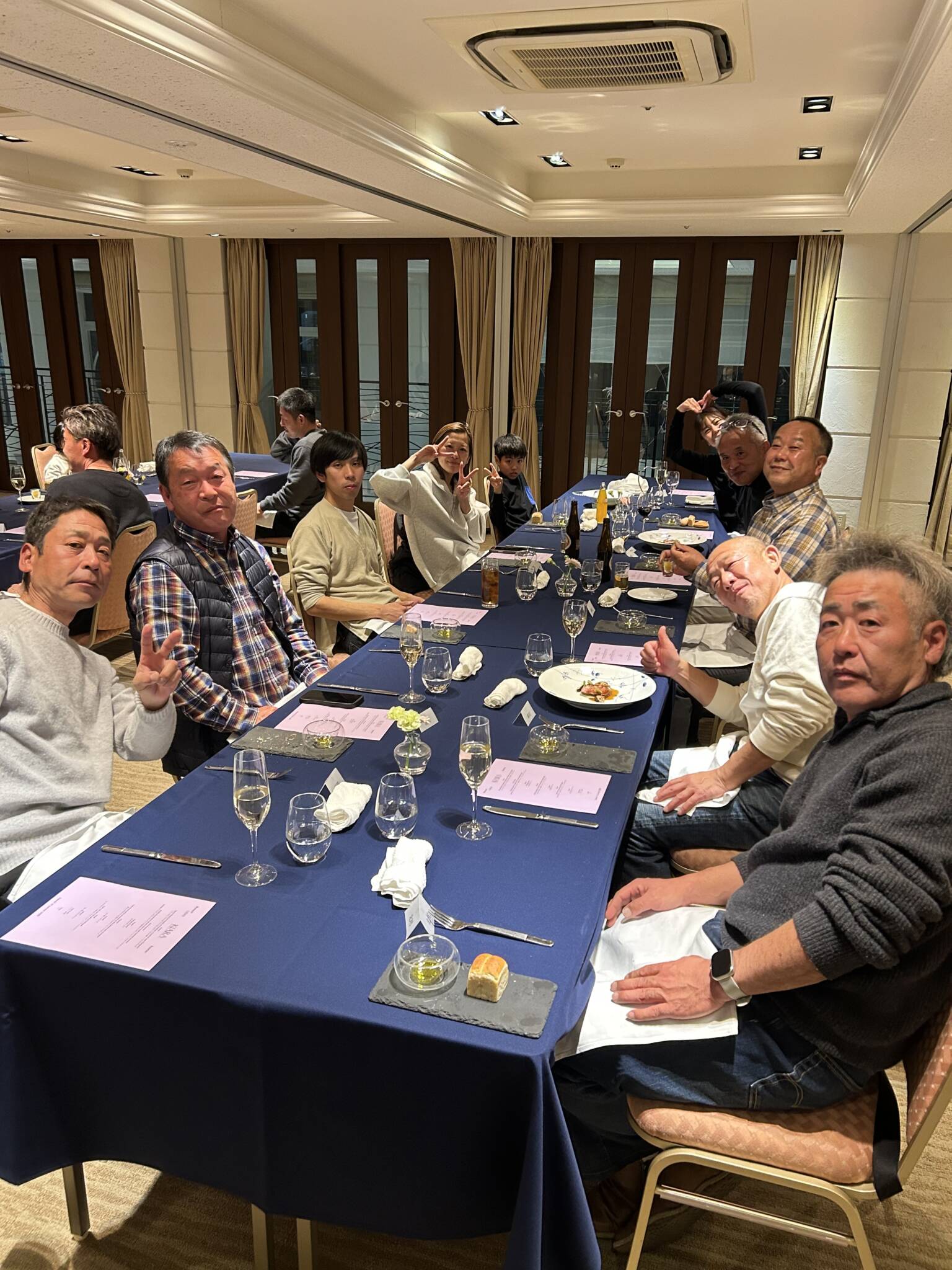 夕食は、フランス料理のフルコース。とても美味しくワインもどんどん進み、いつもながら楽しい時間をみんなで過ごすことができました。